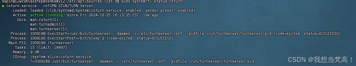 turnserver -o -a -f -r xxx.com -c /usr/local/etc/turnserver.conf查看是否在运行
