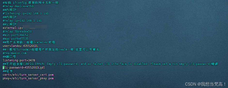 - #不开启会报CONFIG ERROR: Empty cli-password, and so telnet cli interface is disabled! Please set a non empty cli-password!错误
