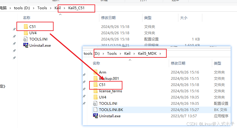 ④复制Keil5_C51下的C51到Keil5_MDK目录下,如下图
