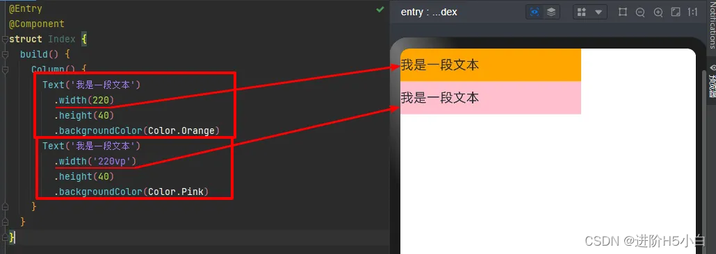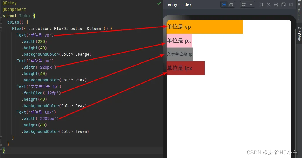 - 注意 : 鸿蒙应用开发提供了四种像素单位, 框架采用 vp 为基准数据单位